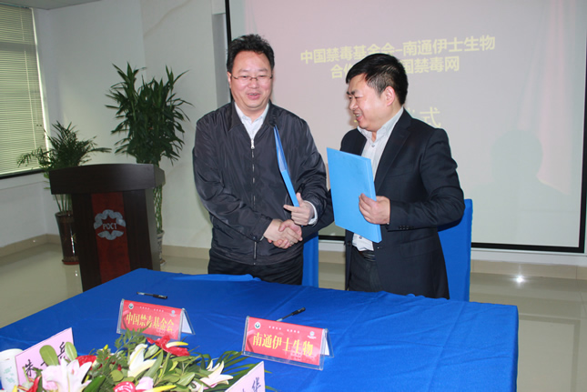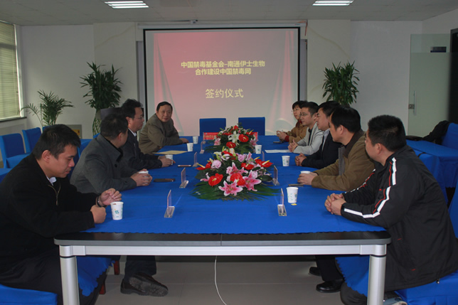 2013年12月7日上午,南通市伊士生物技術(shù)有限責(zé)任公司在伊士生物研究院會議室舉行了“中國禁毒基金會-南通伊士生物合作建設(shè)中國禁毒網(wǎng)簽約儀式”。中國禁毒基金會秘書長李憲輝先生,江蘇省公安廳禁毒總隊(duì)副總隊(duì)長陳紅淦先生,省公安廳和市公安局相關(guān)領(lǐng)導(dǎo)共7人出席了簽約儀式。